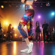 Des éclairs électriques éclatants dans des stries brillantes de tons multicolores sont brillamment frappants dans ces leggings Capri.
