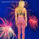 L'imagerie créative, conçue ici, l'art graphique, du texte bleu foncé "Happy Quatrième", exposé contre un, rouge et blanc, rayé, motif du drapeau-avec étoiles bleu marine, et blanc, éparpillé à travers.