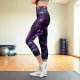 Les tons tourbillonnants foncés de violet se distinguent dans ce design abstrait moderne audacieux avec ces leggings Capri pour toute garde-robe vestimentaire.