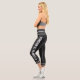 Ces jambières noires sobres sont ornées des mots "Powered by plantes", décorées de petits feuilles stylisés et de rayures blanches sur les deux jambes.