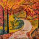 La route sinueuse traverse la forêt. Les enfants courent joyeusement le long des sentiers forestiers, à la recherche de cadeaux d'automne, de glands feuille colorés et de châtaignes. Le graphisme est parfait pour les leggings.