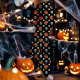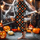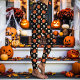 Leggings Crânes d'Halloween, Citrouilles et Fleurs Noirs