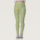 Leggings Fleurs bleues et jaunes Abstraites rétro sur vert