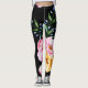 Leggings Fleurs & Feuilles Conception Sur Noir