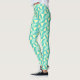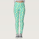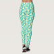Mesdames Leggings dans un motif géométrique en turquoise et jaune sur un arrière - plan bleu clair. Les couleurs primaires sont turquoise, bleu clair et jaune.
