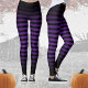 Cool et unique partout imprimer leggings Halloween idée costume pour elle. Motif noir et violet amusant avec des lignes horizontales rétro. Vous pouvez customiser la couleur des leggings violets.
