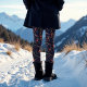 Les leggings de fête sont ornés d'un motif botanique de poinsettias, poires, branches, baies et verdure sur un arrière - plan bleu nuit foncé.