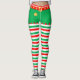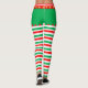 Des leggings rayés rouges, verts et blancs de Noël avec des trèfles dorés.
