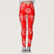 Ces leggings ont un design moderne du milieu du siècle Valentin de mazes de coeur blanc éparpillés sur un champ de rouge.