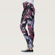 Une paire de pattes vêtues de jambières noires avec un motif d'oiseaux roses et de feuilles tropicaux, la personne porte des baskets noirs et blancs, l'arrière - plan est blanc clair.