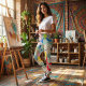 Design artistique avec des papillons blancs sur des gouttes de peinture colorées et des coups de pinceau.