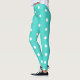 leggings turquoise avec pois blancs, baskets noirs et blancs. L'arrière - plan est blanc clair.