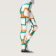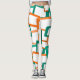 Ces leggings ont un design moderne du milieu du siècle de rectangles biaisés avec des trous blancs dans les tons turquoises et orange.