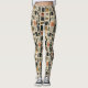 Earthy geometric pattern leggings inspired by tribal mudcloth textiles, featuring hand-painted rectangles, diamonds, and triangles in charcoal black and terracotta on a textured beige background. A warm boho design ideal for rustic décor lovers, artisan style fans, and anyone drawn to earthy geometric aesthetics.
