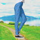 Mesdames Leggings dans un motif de jeu bleu amusant. Un motif répétitif d'images minces en forme de s crée un design distinctif. Les couleurs primaires sont dans les tons bleus.
