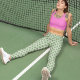 Leggings Vert Pré et Gingham Rose pour Pickleball