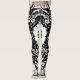 Moderne Legins mit schwarzen Blütendekorationen auf weißem Hintergrund
