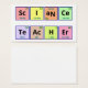 Visitenkarte. Die Wörter "Wissenschaftslehrer" werden mit Symbolen aus dem Periodensystem der Elemente geschrieben. Das Element Neon (Ne) wurde auf den Kopf gestellt, um die erforderlichen Buchstaben für das Wort "Wissenschaft" zu erhalten.