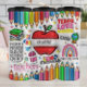 Diese lebendige Grafik zelebriert Pädagogen mit einer lebhaften Collage von aufschlussreichen Phrasen und Bildmotiven. Es zeichnet sich durch einen großen roten Apfel, farbenfrohe Stifte, gestapelte Bücher und einen lebhaften Regenbogen aus. Botschaften wie "INFLUENCER MOTIVATOR EDUCATOR" und "LehrerInnen Pflanze der Samen, die für immer wachsen werden" unterstreichen die tief greifenden Auswirkungen des Unterrichts.