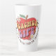 Teacher Life - Weck, Teach, Inspirier Latte Tasse Eine kühne rote Apfelblüte mit lebhaften Blumen und spielerischen Stars, die den Begriff "TEACHER LIFE" in lebendiger, aufregender Typografie umreißt. Darunter steht das Mantra "Weck auf, Teach Kids, Be Phantastisch" mit Energie und Zweck, das den Kern der täglichen Reise eines Lehrers einnimmt. Dieses fröhliche Design strahlt Positivität aus und feiert die Leidenschaft, Kreativität und den Einfluss von Pädagogen überall.