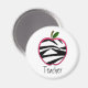 Ein Magnet für Lehrer, der eine Abbildung eines schwarz-weißen Zebraapels mit rosa Zierschnitt zeigt. Unter dem Text steht "Lehrer". Suchen Sie nach anderen zebra druckenden Apfelgegenständen in der Kategorie "Äpfel" des Pink Schoolhouse Stores.