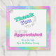 Wenn du will, deinen Lehrern/Mitarbeitern so freundlich und fröhlich wie möglich zu danken, dann ist unser Dankeschön-Tag mit leuchtendem Regenbogen-Hintergrund der richtige Weg! Ob es nun der Tag der Lehrerbewertung ist oder Sie gewollt, sich zu bedanken, dieses Tag ist perfekt. Kleben Sie es auf ein Geschenk und sie werden wissen, dass sie einen Unterschied in Ihrem Leben gemacht haben.