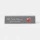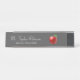 Leicht zu personalisierende Schreibtischtafel mit klassischer weißer Schriftzeichen-Typografie auf einem stylischen grauen Hintergrund, ergänzt durch einen roten Apfel.