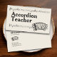 Eine einfache Visitenkarte mit einer Illustration eines Klavierakkordeons und Notenblätter. Ideal für Akkordeonisten, Musiker, Lehrer, Künstler und Konzerte.
