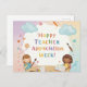 Hier ist die Postkarte für die Lehrer-Wertungswoche im Aquarellstil! 🎨 📚 Das Bild verfügt über ein Vintages Tafelgeschirr mit eleganter weißer Kalligrafie mit dem Text "Danke, Lehrer!", klassischen Apfel- und Buchelementen in einem gemütlichen Klassenzimmer.
