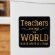 "Lehrer verändern die Welt einen Schüler nach dem anderen" nachdenkliche Typografie zitiert in schwarz und gold. Bitte beachten Sie, dass die Hintergrundfarbe verändert werden kann (nach Auswahl von CUSTOMIZE Option).