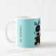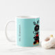 Fun School Lehrer Tasse in Türkis getan mit niedlichen Grafiken eines schwarzen und roten Ladybug stehend auf einem Bleistift. Schwarzer grafischer Text liest, die besten Lehrer lehren aus dem Herzen. Personalisieren Sie den benutzerdefinierten schwarzen Text auf der Seite, um Ihre Bedürfnisse Anzug.