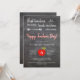 Glücklicher Lehrertag! - Begrüßung Mittag oder Party Einladung mit dem Lehrer zitieren "die besten Lehrer Liebe lehren und Kinder zu lernen Liebe", ein roter Apfel und eine moderne Typografie Skript auf schwarzen Brett Hintergrund. ++++++ Einfach mit Ihren Party-Details personalisieren!