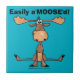 Der lustige Cartoon Elche sitzt in einer geplagten Lage mit einem albernen Gesichtsausdruck. Er sieht leicht amüsiert aus in diesem lustigen Wortspiel-Bild. Spaß für jeden Elchliebhaber oder für jeden, der sich leicht amüsieren lässt. Originelles Design von Christie Black von Kreationen aus dem Herzen.