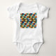 Dieser Babybodyanzug hat ein geometrisches Design aus hellen Diamanten, die sich auf einem schwarzen Feld überlagern.