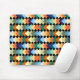 Dieses Mauspad hat ein geometrisches Design aus hellen Diamanten, die sich auf einem schwarzen Feld überlagern.