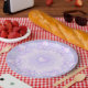 leichte lila Schneeflocke & glitzerndes Herz Pappteller