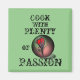 Radiante rote Blume mit dem Text "Cook With Plenty Passion" auf dunkelgrünem Hintergrund