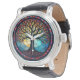 Uhr, Vintage Männeruhr mit schwarzem Lederarmband
