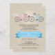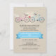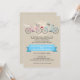 Hochzeiten mit Fahrrädern sind ein lustiger, neuer Trend in thematischen Hochzeiten. Auf diesem Imitat Leinen Hintergrund Hochzeitseinladung treffen sich zwei Fahrräder und bilden ein kleines Herz, um das verheiratete Paar zu symbolisieren. Das Brautrad hat einen Hochzeitsschleier auf dem Sitz und einen Bouquet im Korb. Das Fahrrad des Bräutigams hat eine ungebundene Bugs-Krawatte, die um die Lenkstange herum gewickelt ist. Die Namen der Ehepaare heben sich in einem himmelblauen Banner auf der Vorder- und Rückseite hervor. Erhältlich in alternativen Farben mit Tandembike-Option.