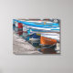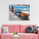 Ein schöner Blick auf die Fischerboote in einer Reihe auf einer Leinwand gedruckt.