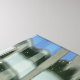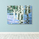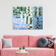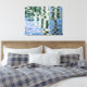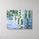 Eine ungewöhnliche Fotografie von Gebäude, die sich im Wasser widerspiegeln und ein farbenprächtiges, auf einer Leinwand bedrucktes Muster erzeugen.