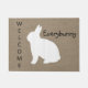 Weißes gestreiftes Häschen auf Leinwand-Sprichwort "Willkommen Everybunny"