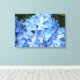 Atemberaubende, blaue Hydrangea-Blüten, wie Haufen von blauen Schmetterlingen, schmücken diese hübsch umhüllte Leinwand. Dieses bezaubernde, fotografische Bild wird in jedem Raum einen unmittelbaren Fokus darstellen.