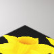 Maßgeschneiderte Leinenkunst wird mit einem grafischen Druck von hübschen gelben Tuffodien auf schwarzer Hintergrundfarbe gezeigt. Passen Sie dieses Objekt an oder kaufen Sie, wie es ist. Bild