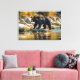 Im Yellowstone Nationalpark zeigt sich eine überdachte Leinenkunst mit einem Foto eines Schwarzbären in der Nähe des Flusses. Lizenziertes Bild