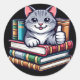 Lektüre von Büchern Katzenlehrer Runder Aufkleber