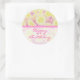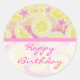 Lémérite rose 'Anniversaire' autocollant rond rayé