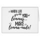 "Wenn das Leben dir Lemas gibt...Mach lemma-nade!" Dieser lustige Satz ist ein Wortgefecht in der sprichwörtlichen Phrase "Wenn das Leben dir Zitronen gibt, mach Limonade." Die Wörter erscheinen in der schwarzen Typografie, in einer Kombination aus gedruckten Schriftart und Skriptbürsten (Pinselstrich). Ein großartiges Geschenk für Mathematiker oder Linguisten!