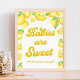 Fügen Sie Ihrem Zitronenduschthema eine charmante Touch mit diesem personalisierten Gefallen-Poster hinzu! Dieses Design ist perfekt für eine Babydusche im Sommer und ergänzt lemonische Babydusche-Ideen mit frischen, hellen Details. Ideal, um die Gäste willkommen zu heißen und süße Gaumenfreuden zu präsentieren, und das Zitronenduschdekor wird dadurch wunderbar verbessert. Ein Muss für Gäste, die im Sommer Babyduschen mit Zitrusfrüchten-inspirierter Drehung planen!
