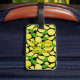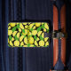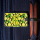 Zitronenslicen und Blätter. Nahtloses Muster. Benutzerdefinierte Hintergrundfarbe. Benutzerdefinierter Text auf jeder Seite.